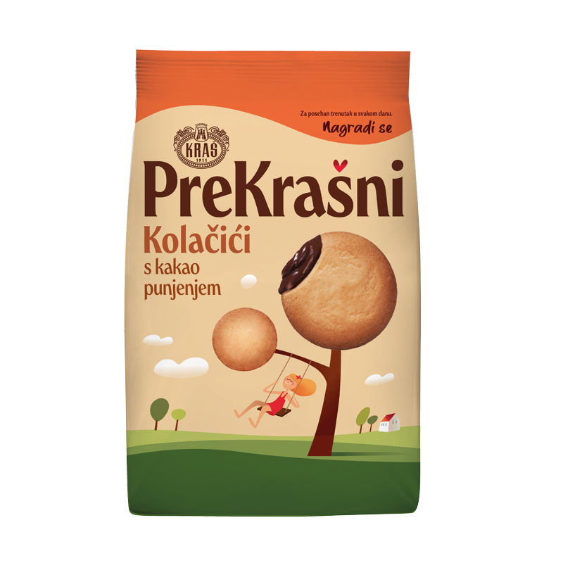 Posebni trenuci zaslužuju da ih obilježiš nezaboravnim okusom. I zato uživaj, nagradi se! uz šalicu toplog mlijeka i ukusni tamni kolačić ispunjen s čak 30% zavodljive kreme bogate kakao prahom, mlijekom i lješnjacima. Neka te vještina Kraševih majstora slastica podsjeti... Kakav kolačić, takav trenutak. PreKrašan.