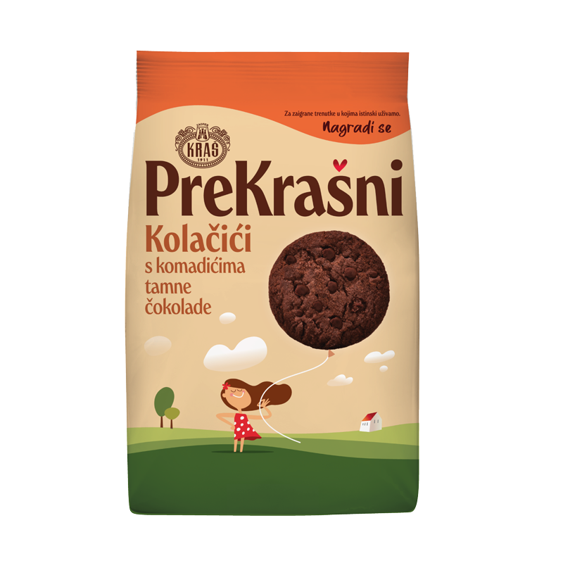 Igra je i uživanje i nagrada kojom ispunjavamo posebne trenutke. Stoga okusi čaroliju zaigranih, vještih ruku Kraševih majstora koje ti donose pomno pripremljene tamne kolačiće s komadićima najfinije Kraš čokolade. Uživaj u svom slatkom izvoru vlakana te znaj... Kakav kolačić, takav trenutak. PreKrašan.